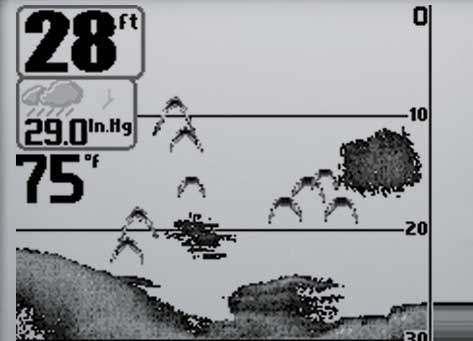 Termokline (a rétegek közötti hőmérséklet ugrások): egymástól jelentősen különböző hőmérséklettel rendelkező rétegek, amely a különböző sűrűségnek köszönhetően visszhangokat eredményeznek. Ezek a rétegek a képernyőn tipikus módon összefüggő és előrehaladó sávként kerülnek kijelzésre. A termokline a horgászok és halászok számara nagyon fontos, mivel a halak az ideális hőmérsékletet és oxigén tartalmat keresik, így vagy direkt a termokline felett vagy alatt találhatók.