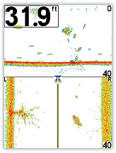 DualBeam PLUS®: Az Ön Humminbird készüléke egyidejűleg két sonár adósugarat használ és a két adó által kialakuló ekhókat vagy egymásra vetítve vagy külön egymás mellett jelzi ki, de az adók ekhóit egyenként is megjelenítheti a teljes képernyőn.